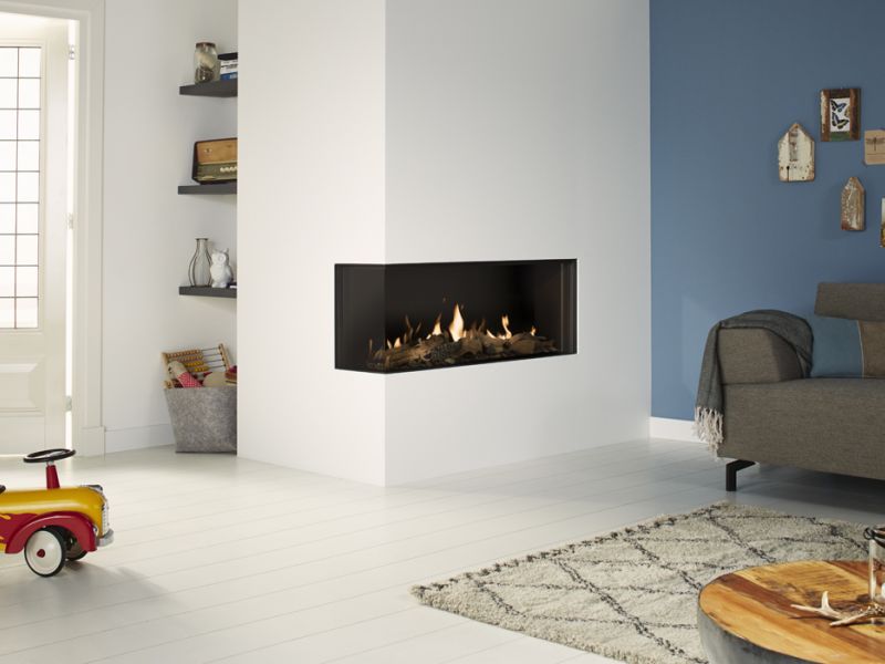 Le Global 100BF Corner est un foyer à gaz d’un mètre de large classique et contemporain avec une forme d’angle. Il propose des présentations de feu par bûches, pierres ou verre anthracite et une efficacité de 88 %. L’intérieur existe en noir et en Ceraglass vitrifié.