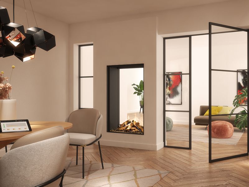 Le Maestro 75 Tall Tunnel Eco Wave est le parfait séparateur de pièces avec une vue sur le feu sur 2 côtés. Grâce à une fenêtre haute, vous vivez l'expérience ultime du feu dans votre maison. En toute saison, vous pouvez profiter du foyer car vous pouvez choisir parmi différentes hauteurs de flamme, l'émission de chaleur et un lit lumineux LED commutable. Ce foyer a un très haut rendement, donc économique à l'usage.
