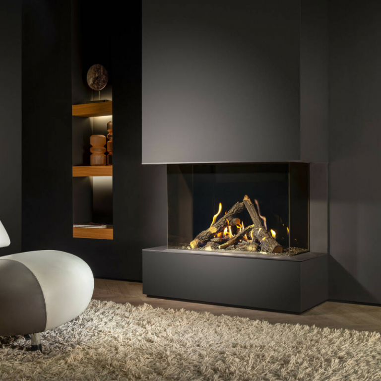Kalfire GI85/55S : foyer à gaz 3 faces, design compact et flammes réalistes