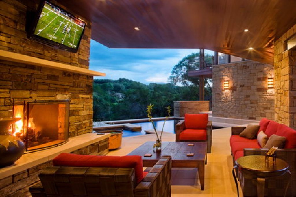 Une véritable cheminée en pierre pour votre extérieur, associé ou non à un pool-house, apporte un "plus" qui allie convivialité et plaisirs du feu de bois lors des soirées un peu fraiches.