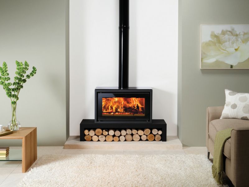 Les modèles Riva de Stovax offrent de nombreux avantages : belle vision du feu, chargement de larges bûches, haut rendement, design moderne avec des aménagements comme prolongement banc...