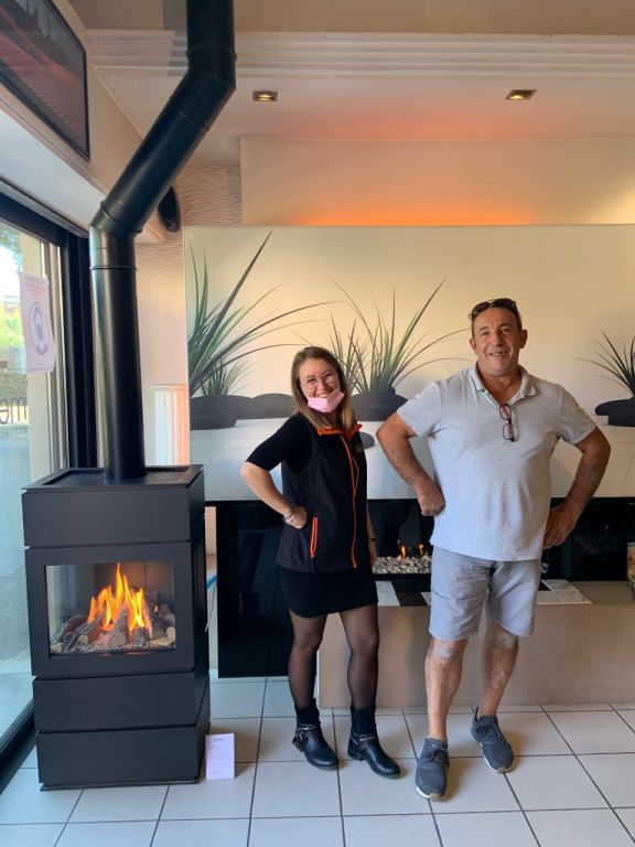 Ce poêle design actuellement en expo dans le show-room ATRE DESIGN fonctionne avec sa télécommande.