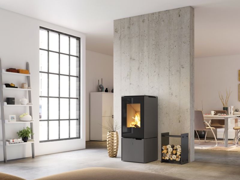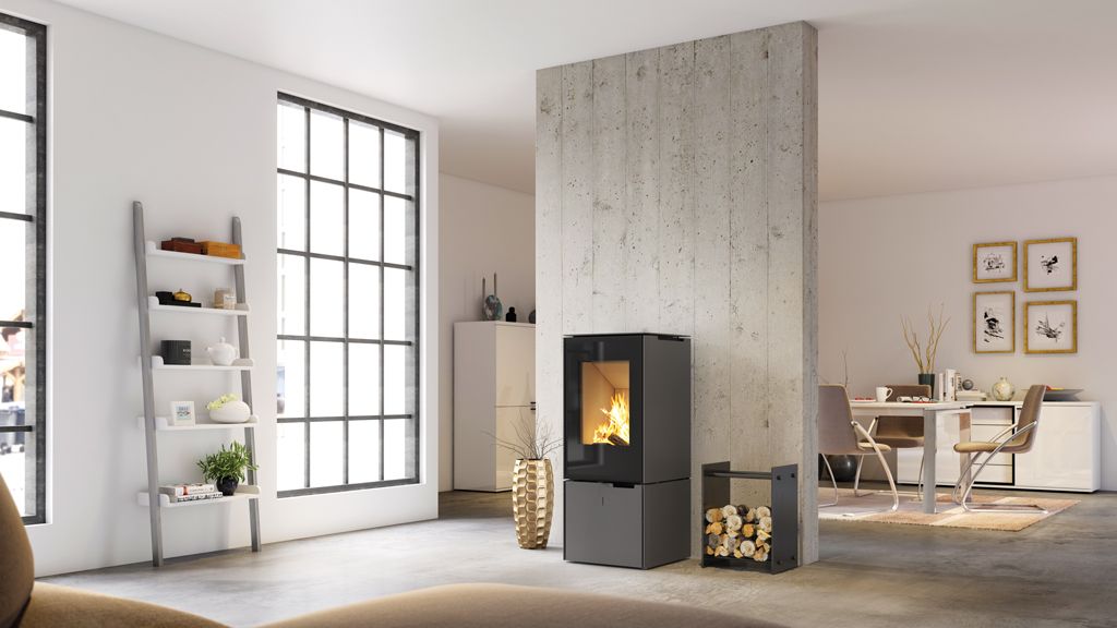 Ambiente est une gamme de poêles à bois modernes, élégants et haute capacité à système de combustion ouvert ou fermé.