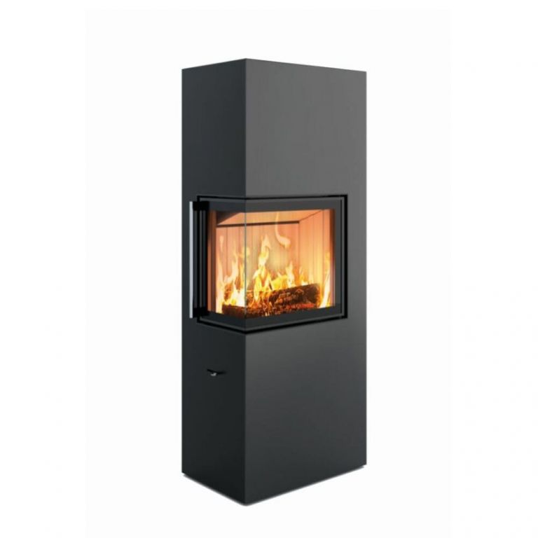 Admirez les flammes avec le foyer d'angle à droite ou à gauche du poêle à bois Lungo.