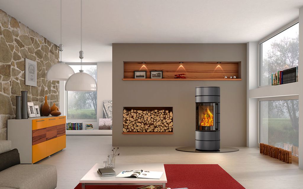 Ambiente est une gamme de poêles à bois modernes, élégants et haute capacité à système de combustion ouvert ou fermé.