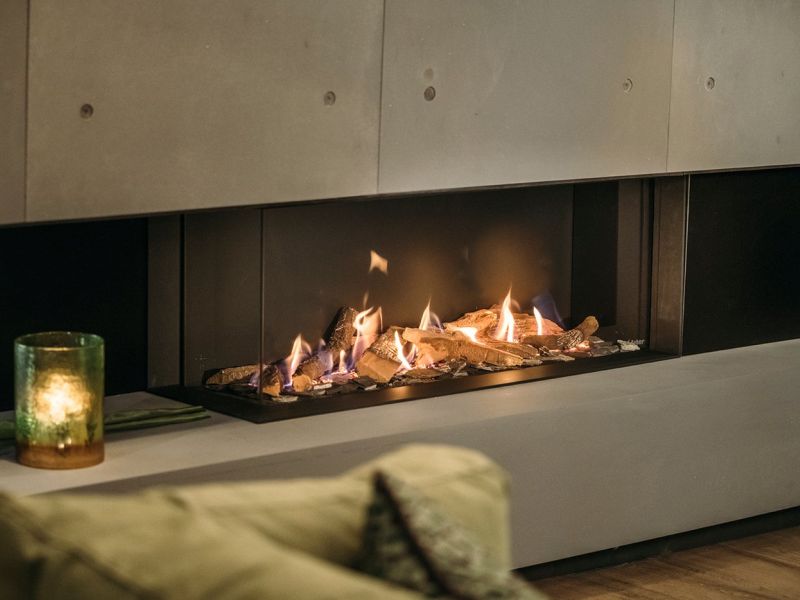 - Vous pouvez décorer les foyers linéaires avec un jeu de bûches réalistes, des galets de Carrare ou des éclats d’ardoise grise.