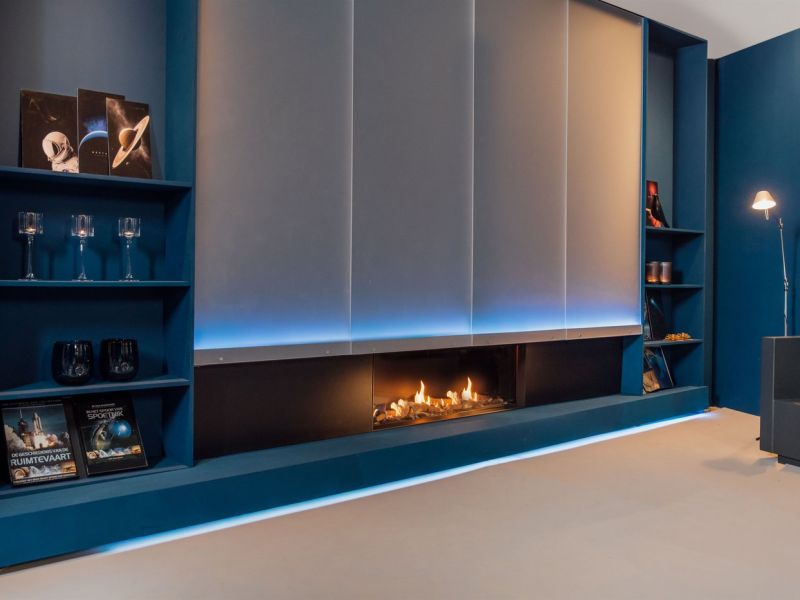- Vous pouvez décorer les foyers linéaires avec un jeu de bûches réalistes, des galets de Carrare ou des éclats d’ardoise grise.