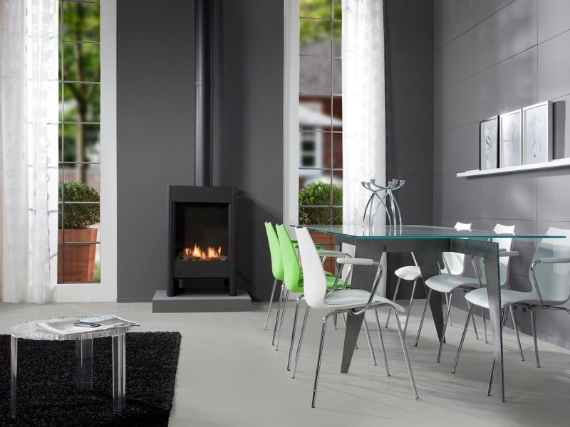 Farum est un poêle à gaz en acier noir au design simple et épuré.