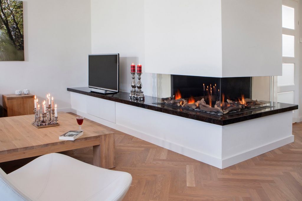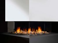Un foyer Faber de la série Premium qui fait l’angle. Ce foyer encastrable doté du brûleur Faber Step Burner® ne passe pas inaperçu. Il est disponible avec différentes options.