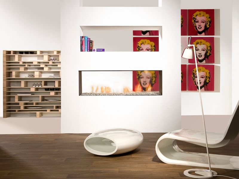 - Le modèle transparent offre une vue magnifique sur le feu depuis plusieurs espaces.