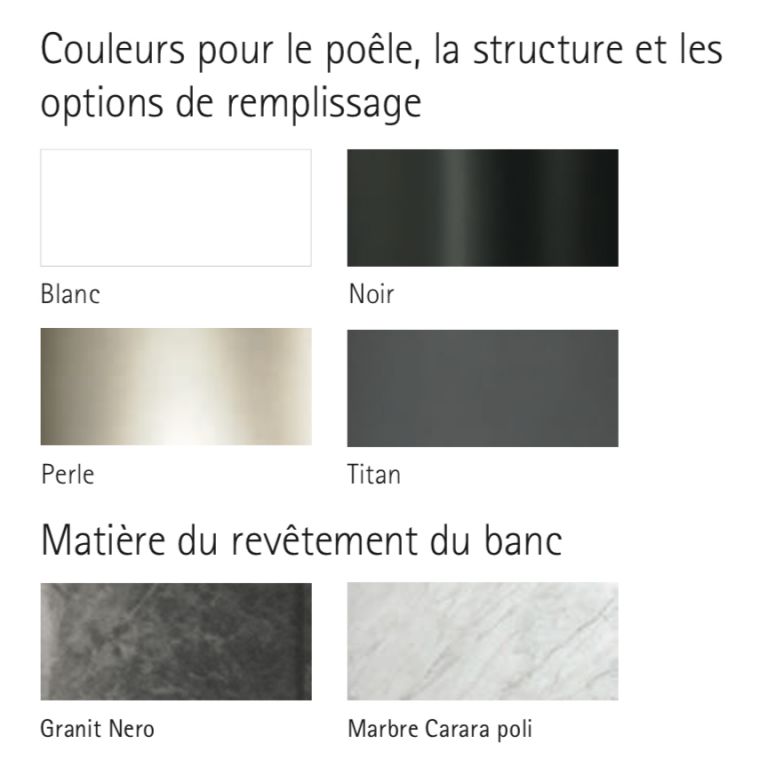 Grâce à sa structure surelevée, le poêle est directement placé à hauteur de vos yeux, et vous permet de profiter pleinement du spectacle que vous offre le feu de bois. Tout comme les options de remplissage des compartiments (bûchers, étagères de rangement, couvercles), la structure en acier peut être personnalisée en noir, en blanc, en perle ou encore en titan.