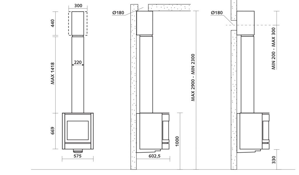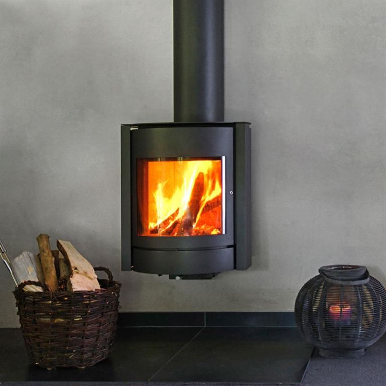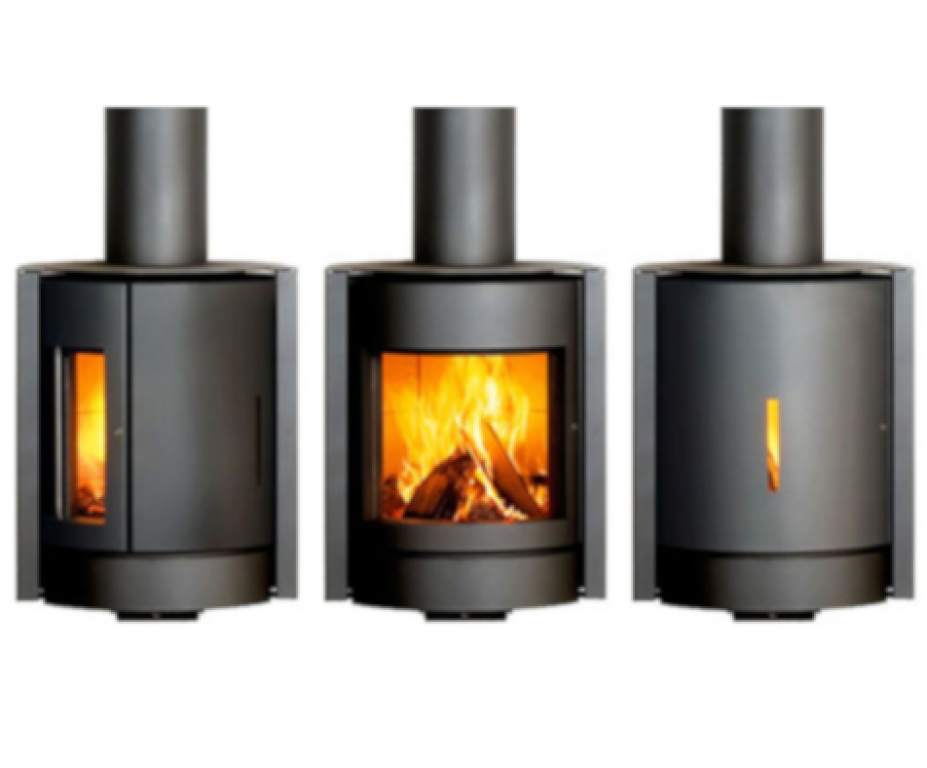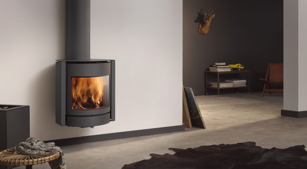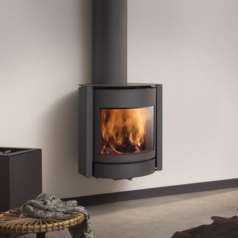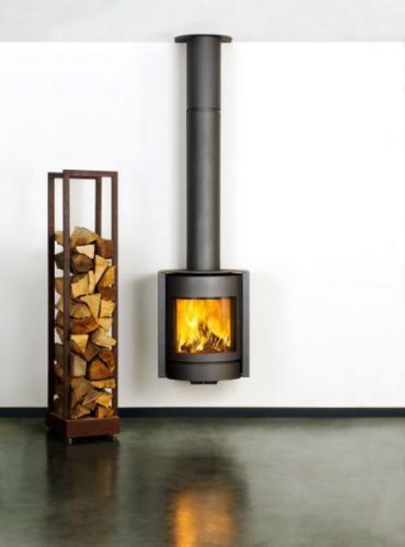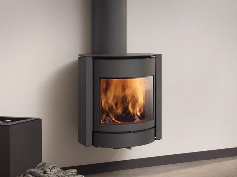 Poêle à bois suspendu idéal pour les habitations compactes ou maisons basse énergie, doté du système trois portes.