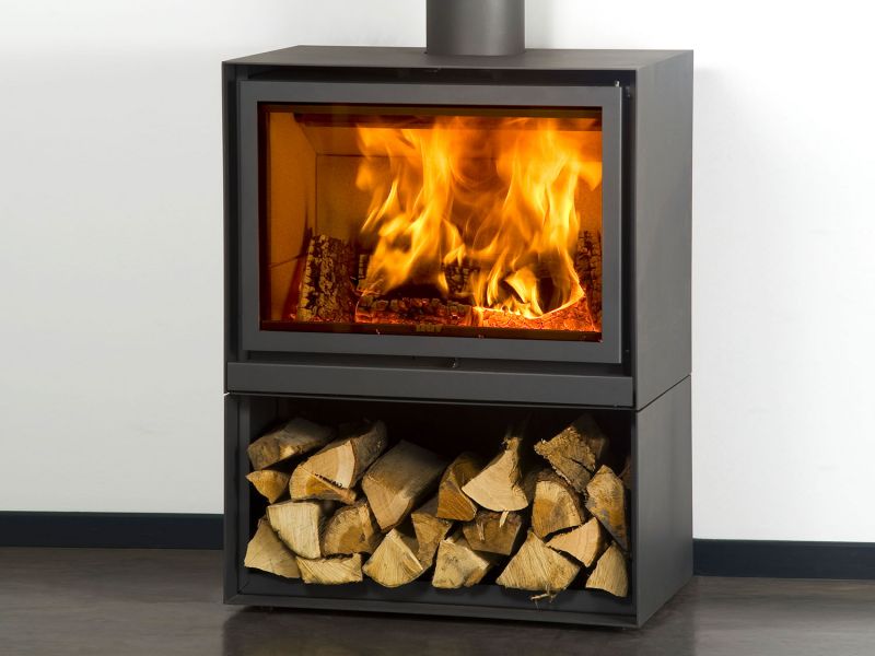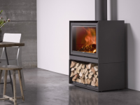 Avec son design sobre et épuré, et sa réserve de bûches intégrée, ce poêle à bois existe en trois largeurs :