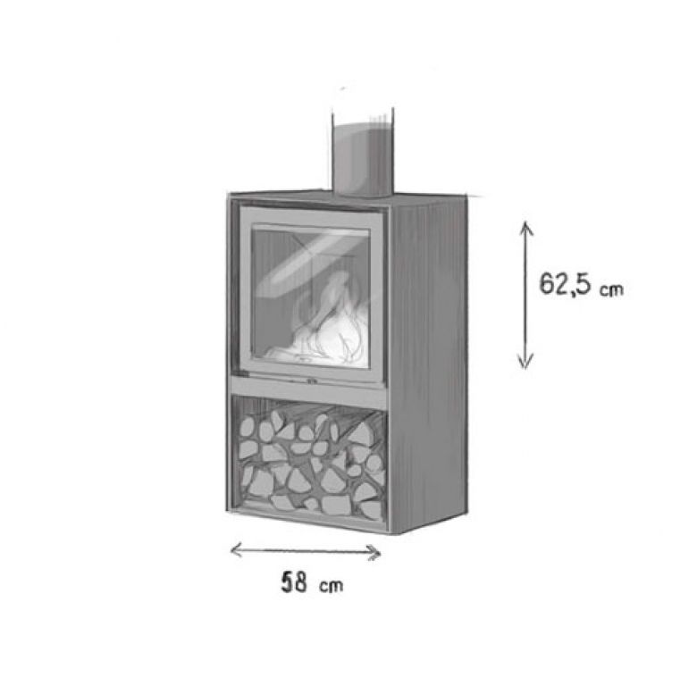 - Modèle étroit (Stûv 16/58) pour bûches de 33 cm maximum. Puissance 5 à 8kW