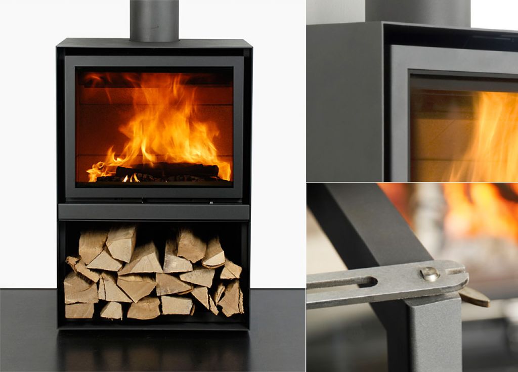 Avec son design sobre et épuré, et sa réserve de bûches intégrée, ce poêle à bois existe en trois largeurs :