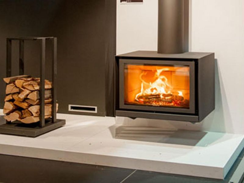 La porte vitrée de ce poêle à bois offre une vue imprenable sur le spectacle des flammes. L'effet visuel du foyer suspendu achève le tableau : le sol ainsi dégagé, la pièce apparaît plus spacieuse. Le système de récupération de la chaleur contenue dans les gaz de combustion prodigue à ce poêle à bois un excellent rendement.