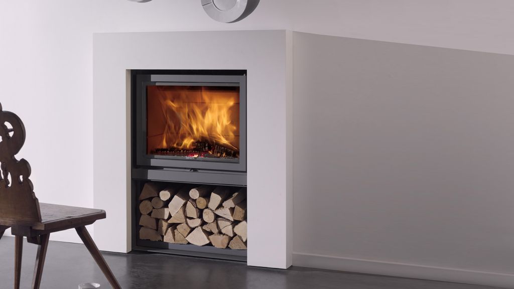 Modèle facile à encastrer, ce foyer à bois est livré avec cheminée décorative et rangement à bûches intégré. L'insert à bois Stûv 16-cheminée existe en trois largeurs :