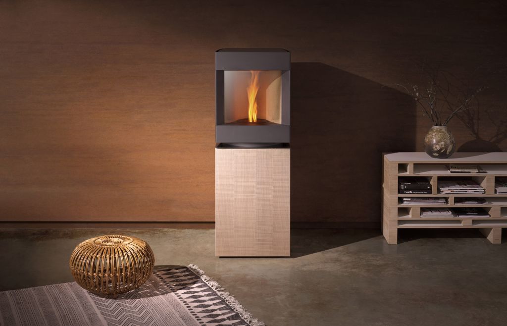 Grâce à sa technologie de combustion brevetée et sa grande vitre orientable, le poêle à granules Stûv P-10 offre une vision sur le feu incomparable. Chauffant uniquement par convection naturelle et par rayonnement, son fonctionnement est particulièrement silencieux. La base du poele abrite le réservoir de granulés et les éléments techniques. Cette base est proposée dans trois finitions standards (chêne foncé, chêne clair ou acier) et peut-être personnalisée.