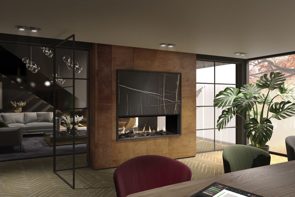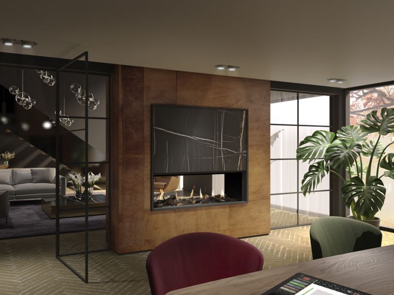 Ce foyer gaz impressionnant mesure 1,3 mètre de large avec une vision double face sur le feu. Il a un intérieur noir lisse, accentuant la flamme exceptionnelle. Il a une production de chaleur impressionnante de 10,8 kW avec une efficacité évaluée à 86 %.