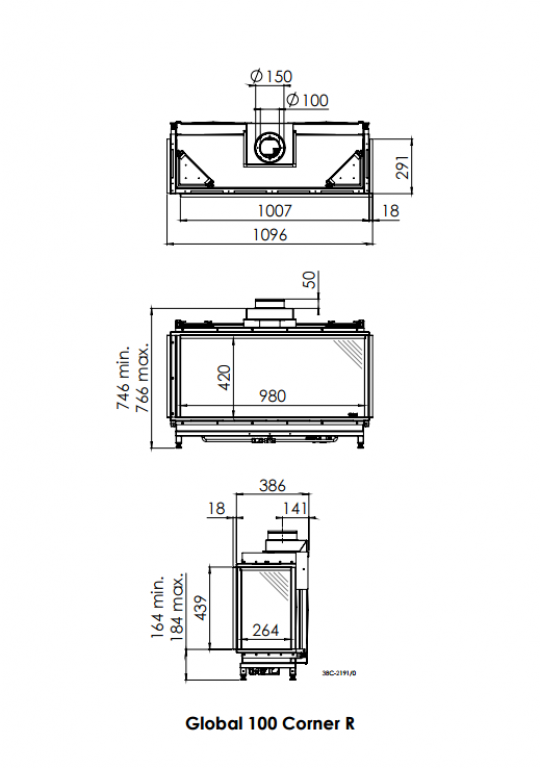 Le Global 100BF Corner est un foyer à gaz d’un mètre de large classique et contemporain avec une forme d’angle. Il propose des présentations de feu par bûches, pierres ou verre anthracite et une efficacité de 88 %. L’intérieur existe en noir et en Ceraglass vitrifié.