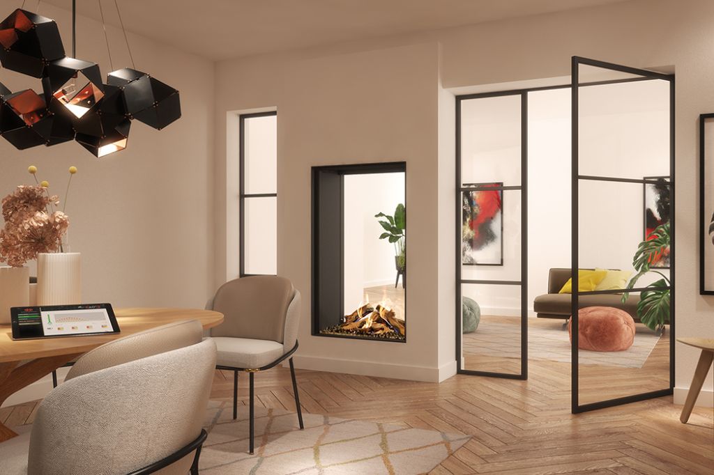 Le Maestro 75 Tall Tunnel Eco Wave est le parfait séparateur de pièces avec une vue sur le feu sur 2 côtés. Grâce à une fenêtre haute, vous vivez l'expérience ultime du feu dans votre maison. En toute saison, vous pouvez profiter du foyer car vous pouvez choisir parmi différentes hauteurs de flamme, l'émission de chaleur et un lit lumineux LED commutable. Ce foyer a un très haut rendement, donc économique à l'usage.