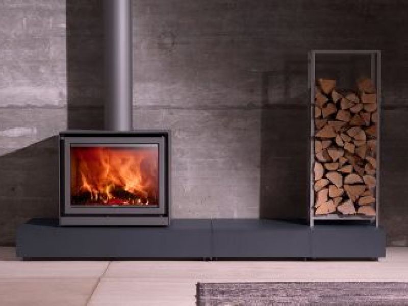 Le poêle à bois Stuv 16/68, compact et élégant, peut être installé au sol, sur un socle maçonné ou sur un socle Stûv.