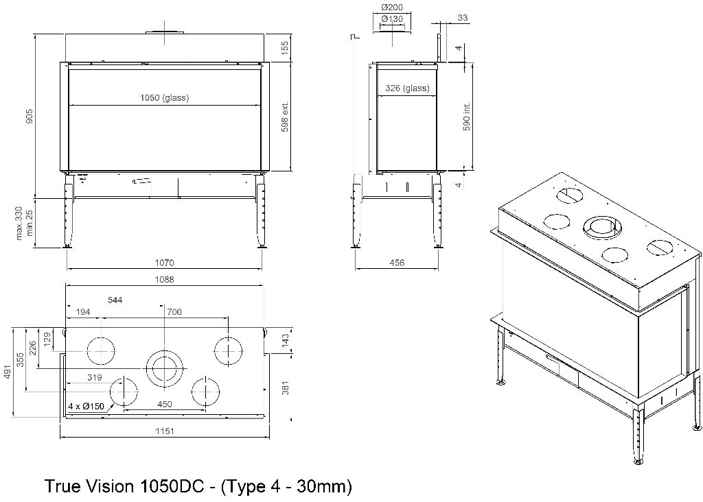 Les True Vision Open Fire Look, sont des cheminées gaz à double coin vitré.