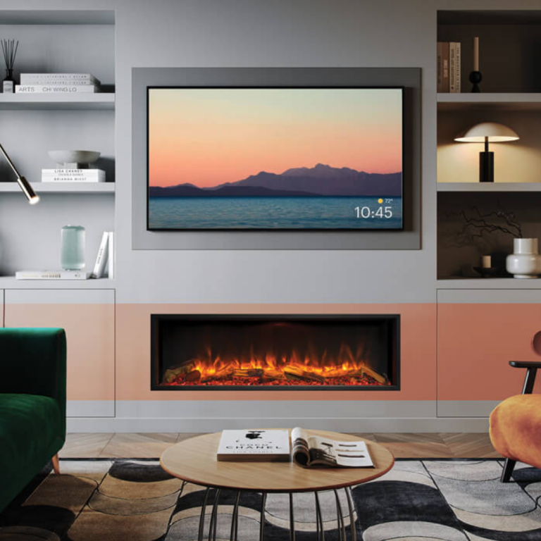 Véritable pièce maîtresse décorative, l’eReflex 135RW de Gazco séduit par son format panoramique et sa technologie de flamme LED ultra-réaliste, pensée pour les intérieurs contemporains haut de gamme. Cet insert électrique dernière génération propose une personnalisation complète : couleurs de flammes, effets de braises, lit décoratif et éclairage d’ambiance. Il s’installe esans aucun conduit et se contrôle facilement via télécommande, application mobile ou assistant vocal. Idéal pour sublimer un mur de salon, un hall d’entrée ou un espace détente, il offre une solution de chauffage d’appoint élégante et connectée.