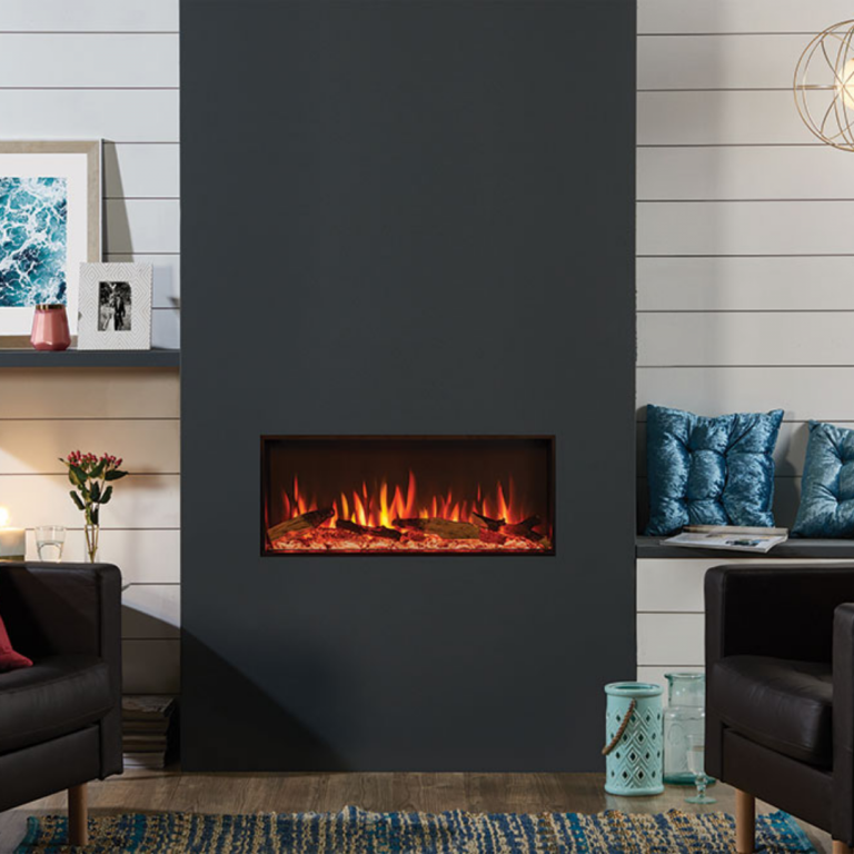 L’eStudio 85R de Gazco est un insert électrique encastrable au design minimaliste et contemporain, idéal pour créer une ambiance chaleureuse et immersive sans installation complexe. Son format horizontal met en valeur des flammes LED ultra-réalistes, réglables en intensité et en couleur, avec plusieurs décors inclus. Conçu pour être installé dans un mur, il fonctionne avec ou sans chauffage, et se commande facilement via une télécommande. Un modèle élégant, simple à intégrer, parfait pour les personnes à la recherche d’un insert décoratif épuré, sans conduit ni entretien.