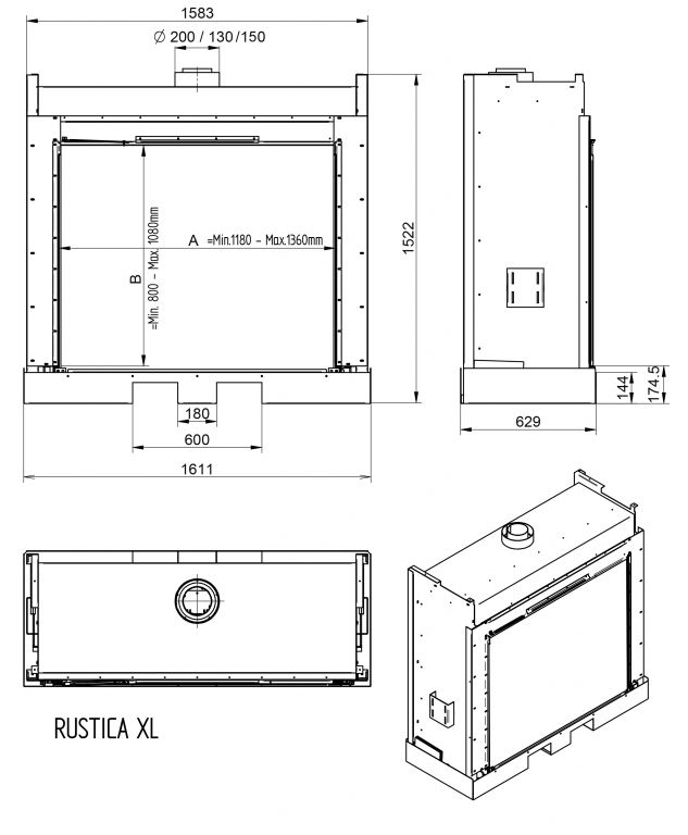 Les foyers Rustica sont conçus pour s’intégrer parfaitement dans une ancienne cheminée avec habillage en pierre. Trois dimensions de forme classiques verticales sont proposées, M médium / L large / XL extra-large. Ces cheminées gaz peuvent être équipées d’un intérieur en acier, cependant l’idéal est de concevoir un fond en briquettes assorties à la couleur de l’habillage en pierre pour un rendu plus harmonieux.