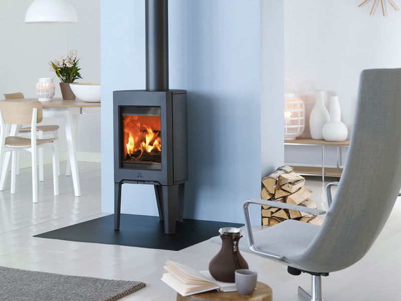 Le poêle à bois Jotul F162se caractérise par un design soigné et 3 pieds qui en font un poêle sobre et moderne.