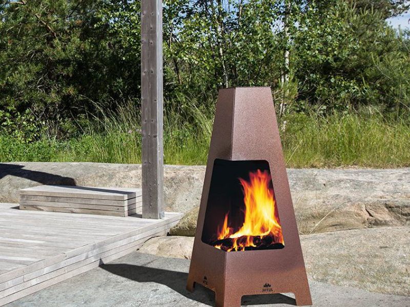 La cheminée bénéficie d’un design unique, avec une large ouverture des deux côtés offrant ainsi une vue spectaculaire sur le feu. Le Jøtul Terrazza est composé d’acier Corten, qui après une courte durée à l’extérieur développe une surface corrodée qui souligne toute l’élégance du produit. La corrosion a un effet protecteur qui vous permet de laisser votre cheminée à l’extérieur tout au long de l’année. L’acier Corten est également utilisé pour les façades de bâtiments pour son effet « rouillé ».