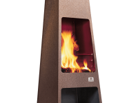 Une cheminée robuste en acier corten qui peut rester dehors en toutes saisons.