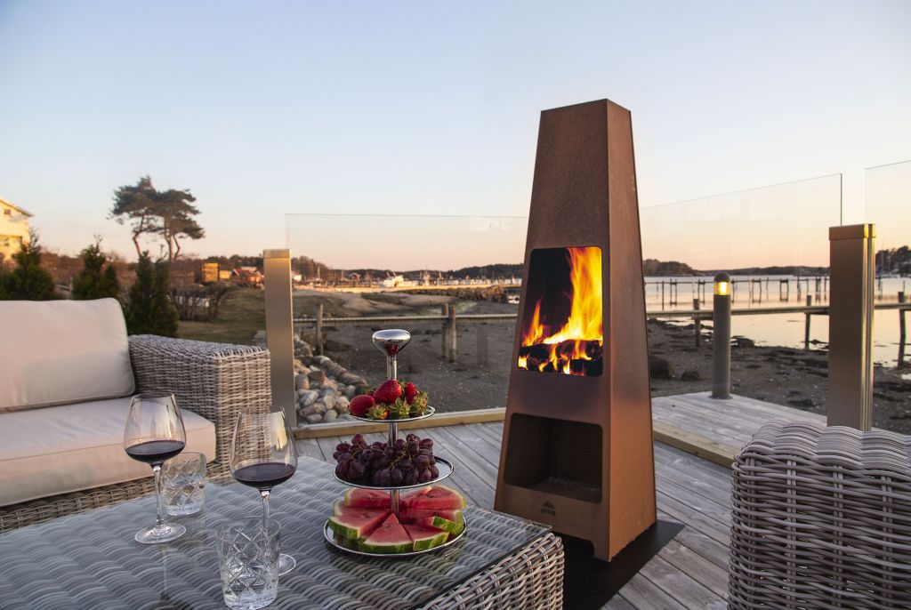 Cette cheminée d’extérieur crée une atmosphère chaleureuse et conviviale, pour faire durer vos soirées au grand air.