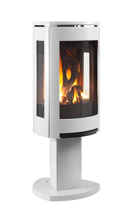 Le poêle à gaz Jøtul GF 373 se distingue par son esthétique moderne et son piètement piédestal.