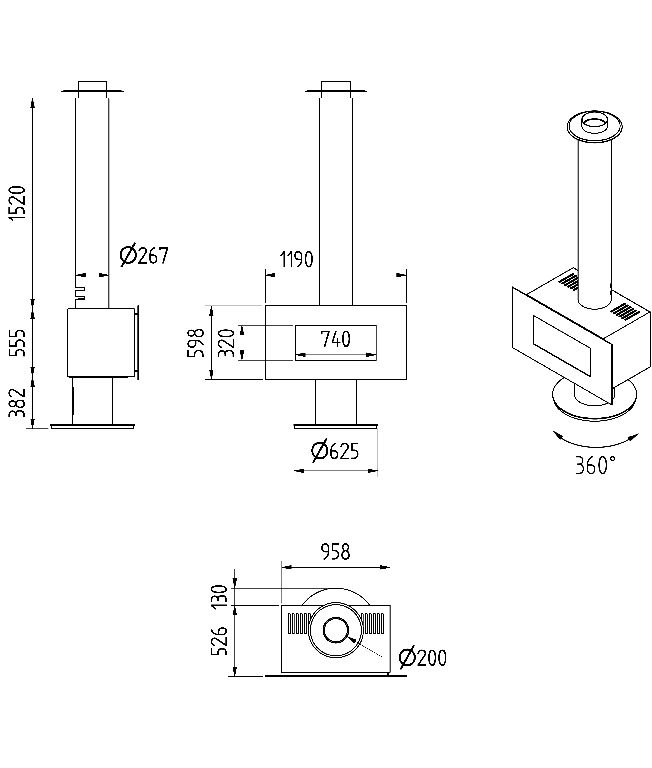 Ces poêles de format 16:9 Doté d’un pied circulaire peuvent être installer au beau milieu de la pièce et pivoter à 360° afin que vous puissiez profiter au maximum de la flamme.