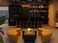 Glammfire a développé un modèle de cheminée extérieure qui intègre des sièges confortables disponibles dans une variété de couleurs.