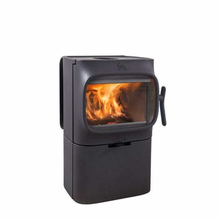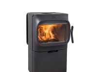 Soulignons en particulier sa porte vitrée horizontale, offrant une belle vue sur le feu, et son système de contrôle de combustion simple et intuitif. Sa base en fonte prolonge les lignes de la chambre de combustion.