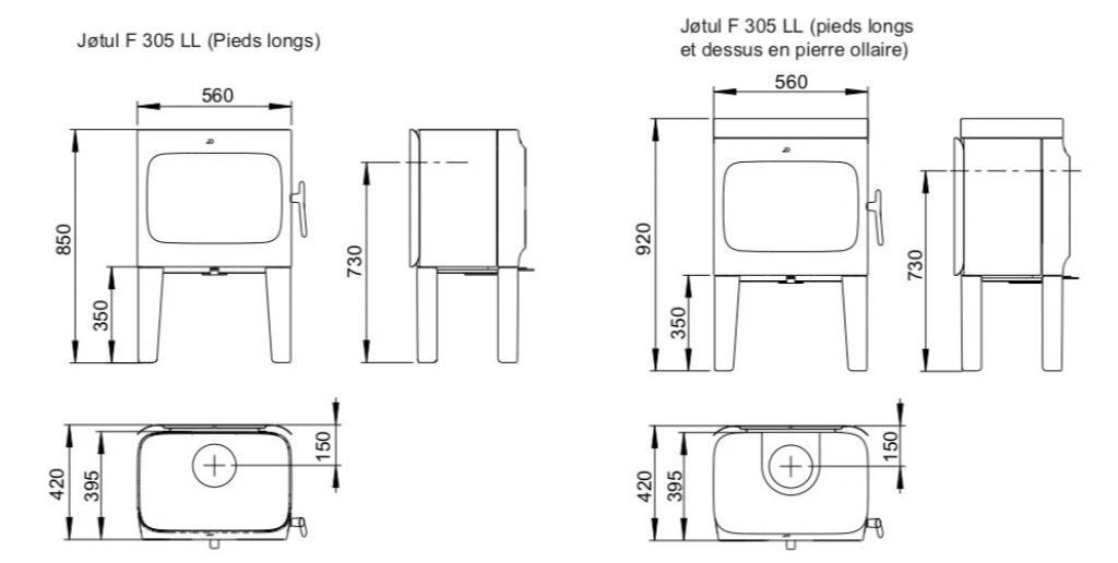 Options | - 4 Pieds courts - Dessus en pierre ollaire - Bavette - Kit de raccordement prise d'air directe - Bouclier thermique - Plaque de sol |