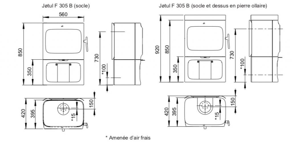 Options | - Dessus EN pierre ollaire - Kit de raccordement prise d'air directe - Bouclier thermique - Plaque de sol |