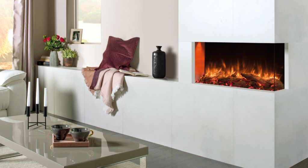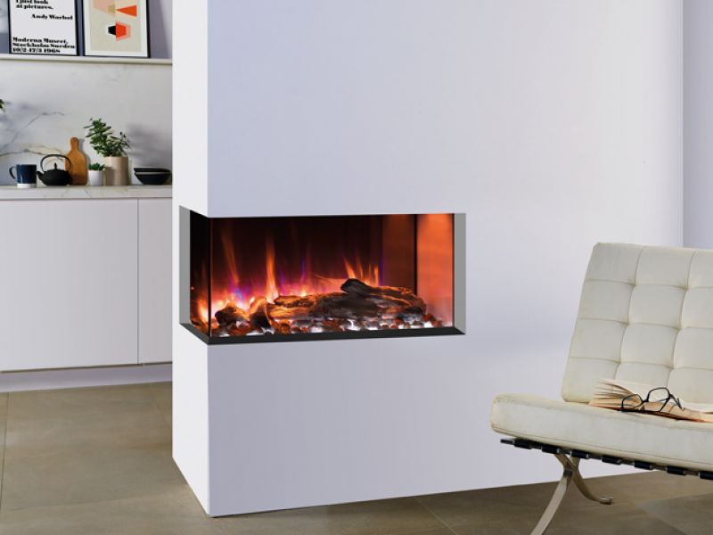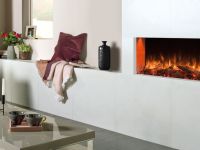 L’insert électrique eReflex 70W Outset de Gazco peut être installé en tant qu’insert à deux ou trois côtés. Comme tous les modèles eReflex, cet insert électrique innovant bénéficie d’un choix de trois superbes options flamme incluant ambre, bleue et ambre avec un accent bleu. Chaque couleur de flamme est mis en valeur par un éclairage dirigé vers le bas, qui baigne le tapis de combustibles soit dans une lueur ambre ou blanc calme afin de créer un spectacle visuel réellement intégrant. Un autre éclairage illumine le lit de combustibles par le bas pour un effet envoûtant de braises scintillantes.