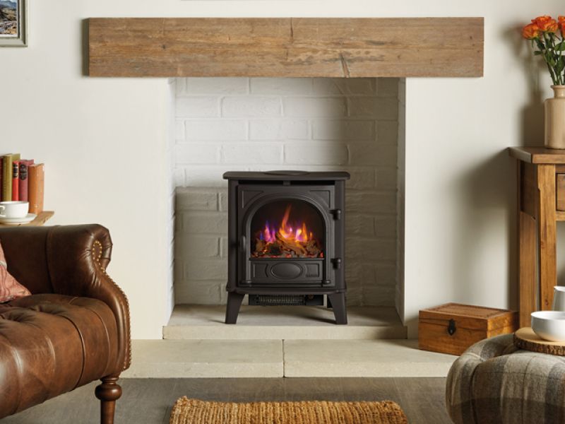 Les poêles électriques Stockton sont dotés de la technologie VeriFlame™ de Gazco grâce à laquelle il est possible de choisir entre deux réglages de chaleur, trois niveaux d’intensité lumineuse des flammes ainsi que l’option supplémentaire d’un effet flammes bleues sur haut réglage. Le radiateur est quant à lui discrètement dissimulé sous le poêle et peut être contrôlé par télécommande.