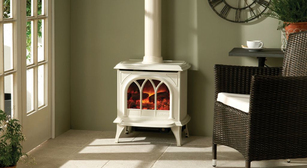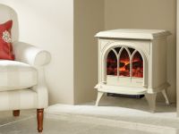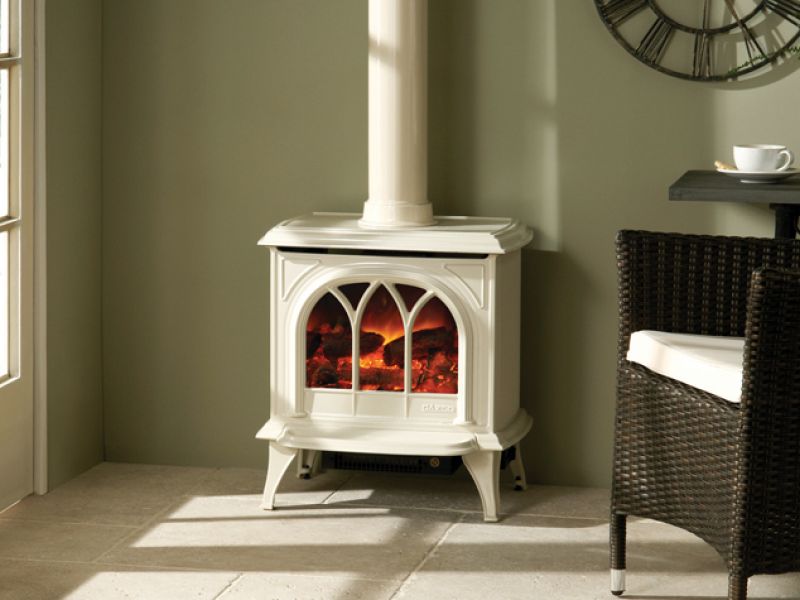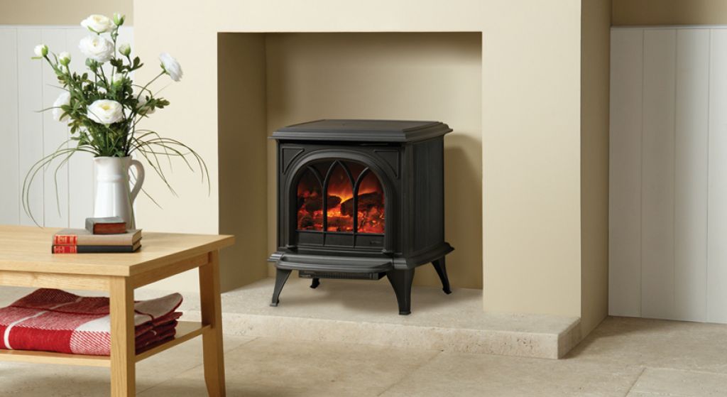 La version électrique du populaire poêle à gaz Huntingdon de Gazco est doté de lignes gracieuses et raffinées et d’une porte à moulures ogivales derrière laquelle l’effet bûche et braises rougeoyantes Vériflame™ captive le regard.