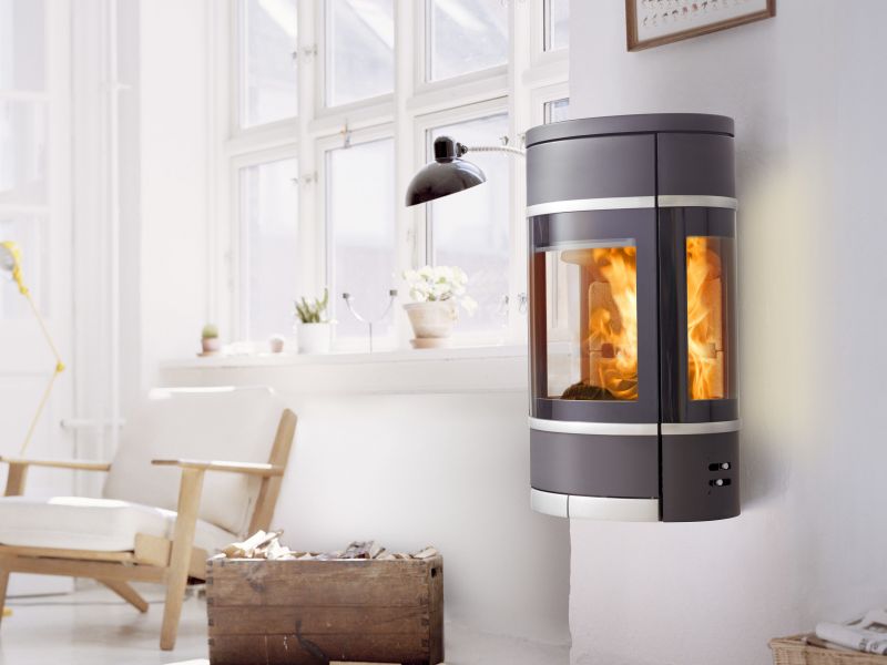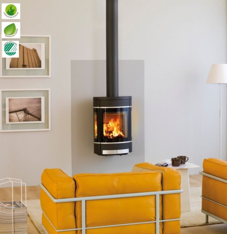 Elégant poêle à bois suspendu design, idéal pour un gain de place