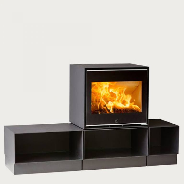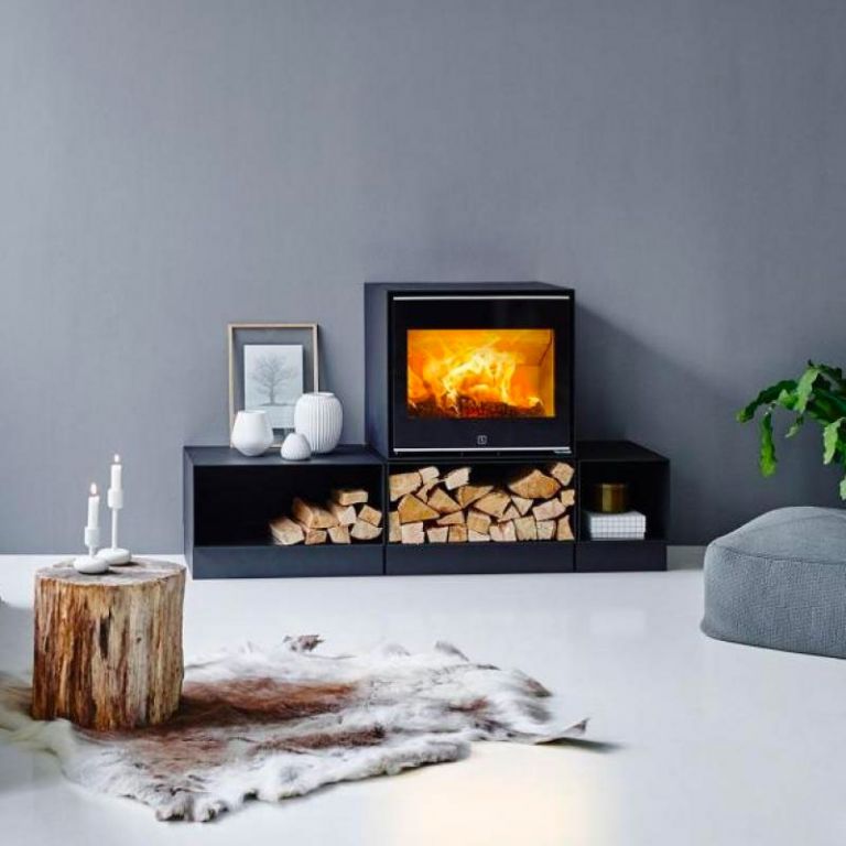 Ce poêle design allie esthétique et praticité. Les bûchers initialement destinés au rangement de vos bûches ont également été pensés comme des éléments de décoration. Cadre, livres, objets de décoration y seront les bienvenus.