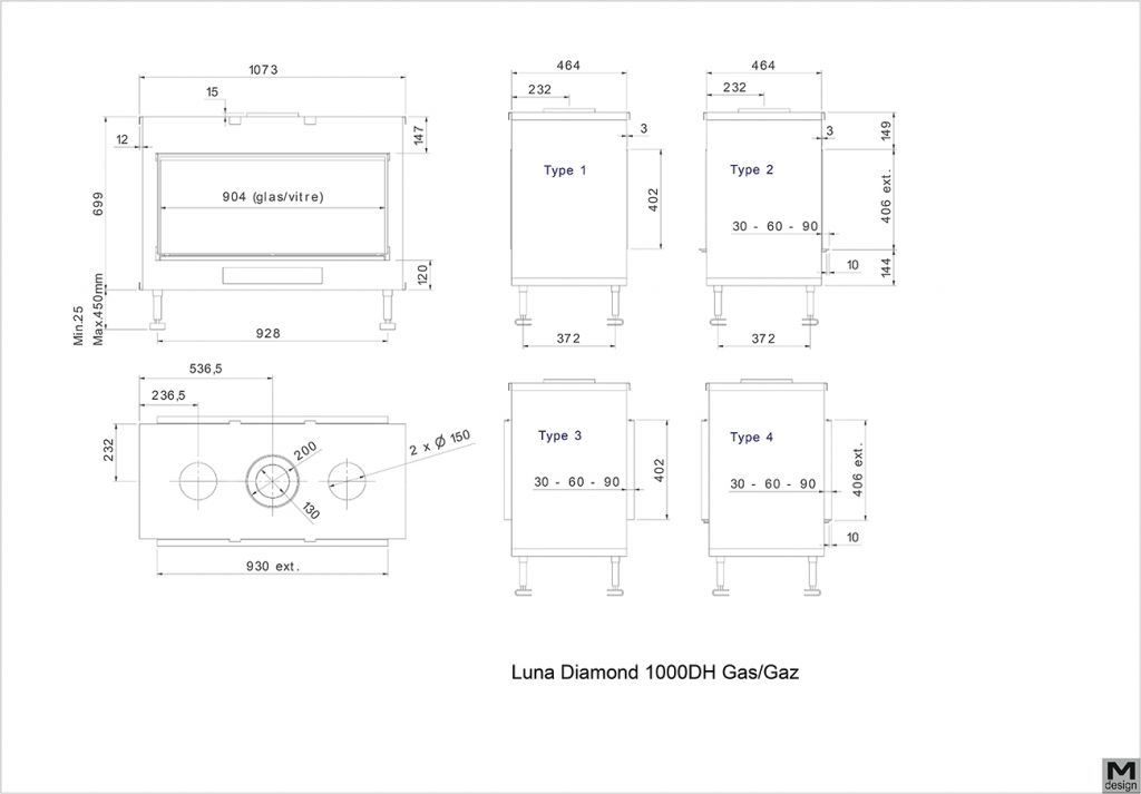 Le LUNA Diamond Gaz 1000 DH est une cheminée gaz, double face horizontale. Ce foyer gaz a presque toutes les options disponibles hormis le type des 3 brûleurs en ligne.