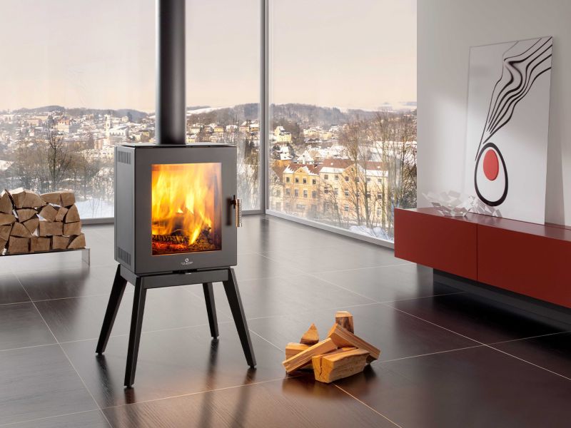 Poêle au design tendance, le BONN est un appareil fonctionnant au bois et au pellet sans électricité.