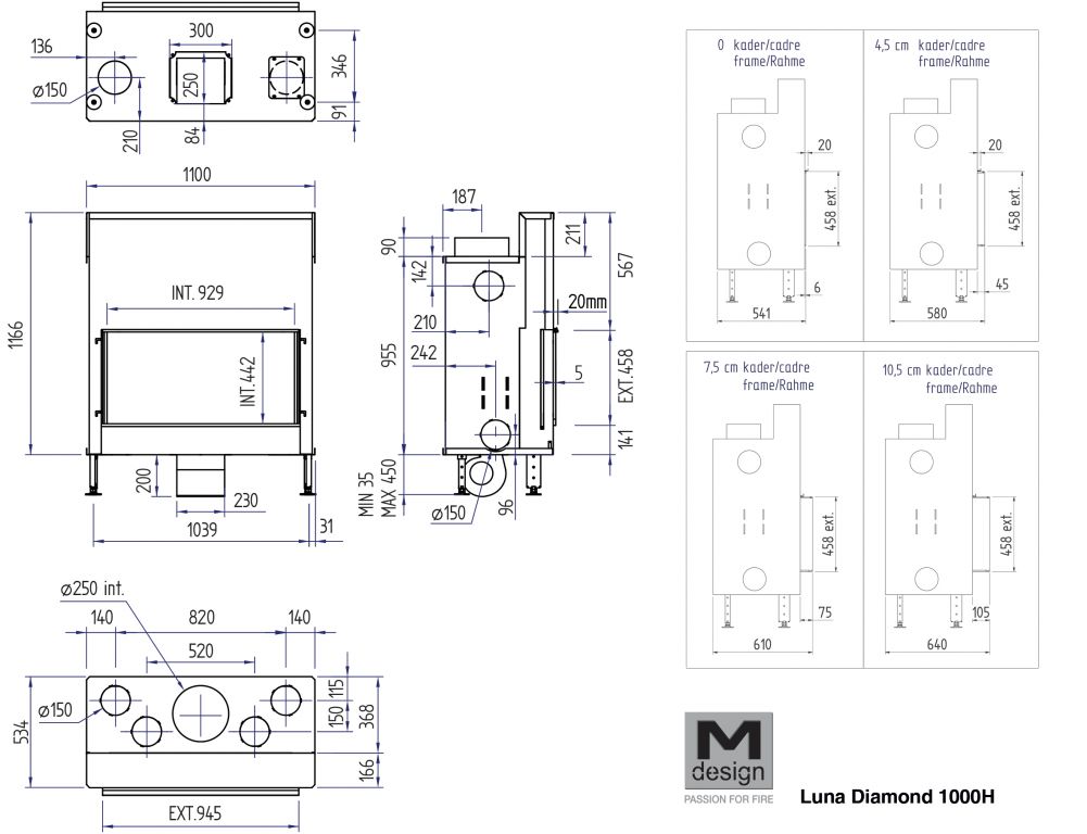La Cheminée Bois Luna Diamond 1000 H fait partie des cinq foyers bois de forme horizontale proposé par M-Design. Ce foyer est doté d’une vitre et pare feu escamotables, d’un cadre de finition de 8mm d’épaisseur et au choix d’un intérieur en acier ou en fonte.