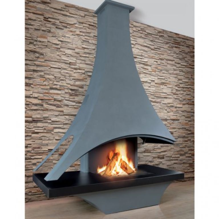 Couleurs standards hotte et socle : gris foncé thorium et retombée et dalle foyère : noir sablé