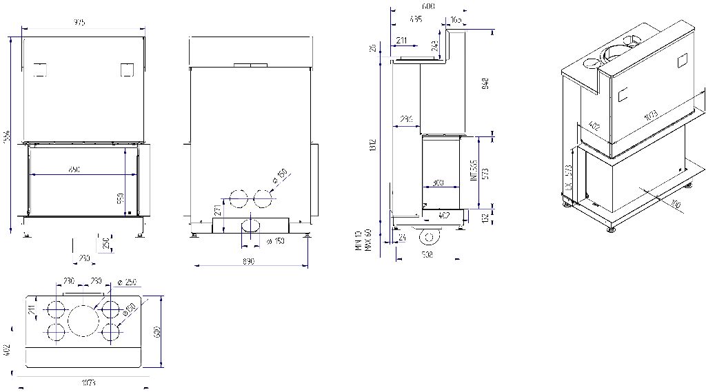 Options | Intérieur fonte Cadres de finition Ventilateur avec pièce spéciale Raccordement latérale de l'air de combustion |